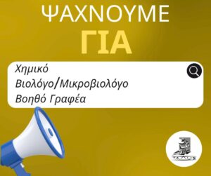 Προσόντα: Πτυχίο πανεπιστημιακού επιπέδου σε θέματα Βιολογίας/Μικροβιολογίας ή σε κλάδους αυτών.